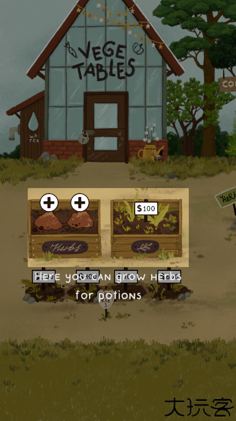 4、玩家给这些材料浇水并且精心照料,不久之后就会长大,之后就可以进行收割。