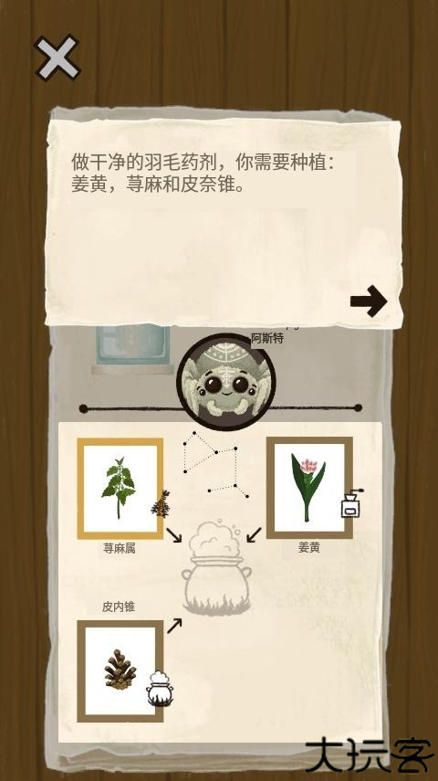 3、玩家的目标是成为一名药剂师,在商店购买制作羽毛药剂的材料,分别是姜黄、荨麻属以及内皮锥。