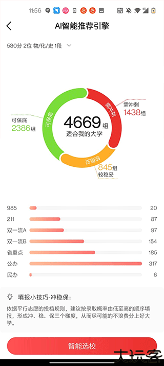 优志愿高考填报系统是专为高三考生和家长打造,提供全方位智能化的志愿填报辅助服务。优志愿高考填报系统下载安装后,系统会根据分数和选科组合,对志愿进行录取概率评估与风险提醒,帮助用户规避盲报、冲报、滑档等风险。系统能够根据多个维度,精准生成个性化志愿推荐方案,让每一分都用得其所,助力考生离理想大学更近一步。
