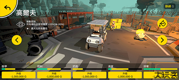 在车库中使用资源升级部件,提高冲撞与火力效率。