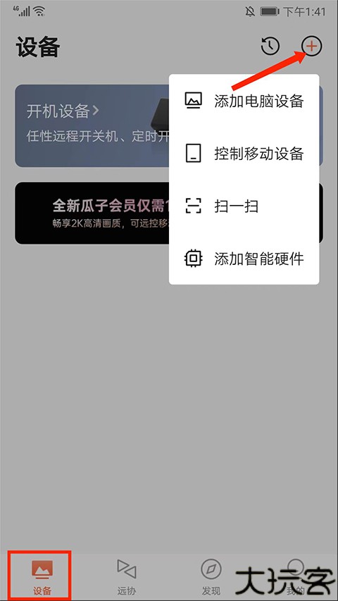 2、进入【设备】界面,选择右上角【+号】图标可进行电脑设备、控制移动设备、扫一扫以及添加智能硬件的操作,用户可根据需求选择使用。