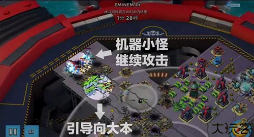 倒计时一分多时转向总部,保留小怪削弱护盾节约输出时间。