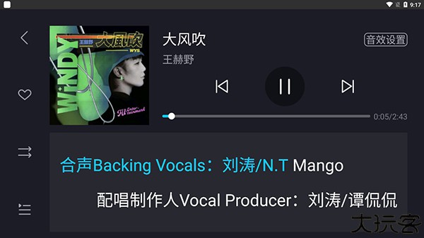 播放界面支持歌词查看、切歌与音效自定义设置。