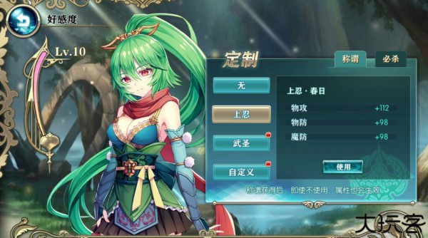 好感达到4级后可命名专属大招,战斗中将展示定制名称。