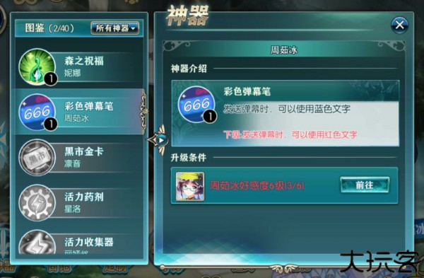 3星角色可在好感达3级时开启神器,属性能力随亲密提升逐步增强。
