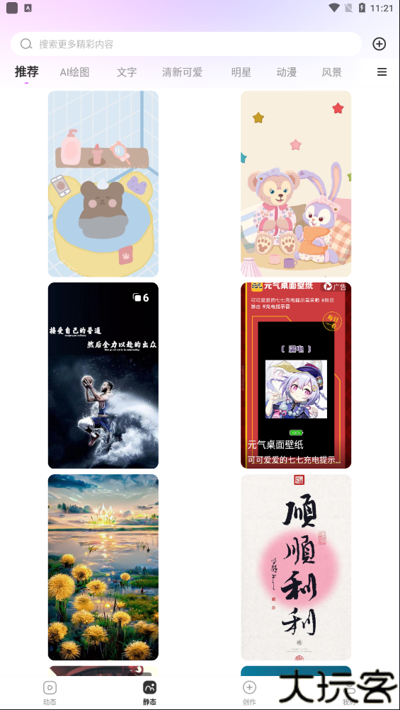 1、拥有超过百万种壁纸选择,涵盖风景、动物、卡通、明星、古风、美食等各种主题。