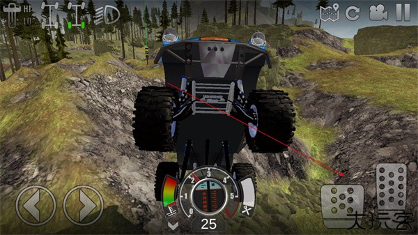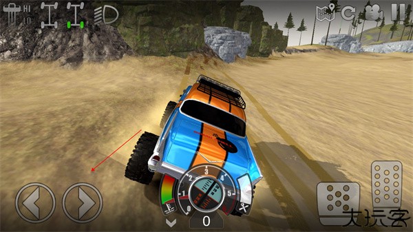2、左侧按键掌握转向,右侧控制油门及刹车,顺畅应对地形。