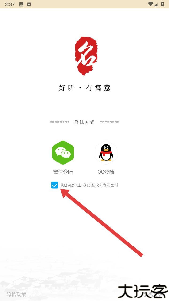 3、认真阅读软件使用的协议,确认自己能够接受后,勾选方框,进行下一步操作完成登录。
