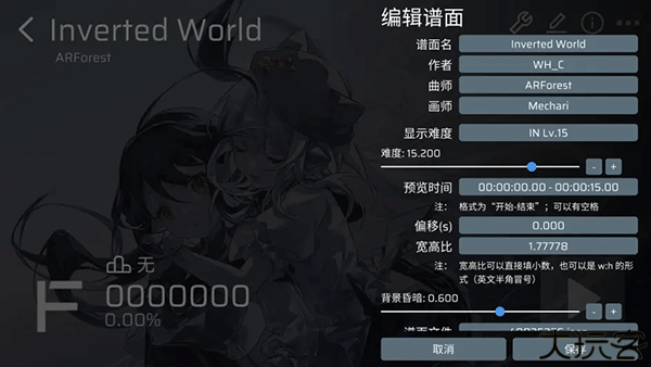点击信息符号可查看曲名、作者、难度分类、评分与识别码等详细资料。