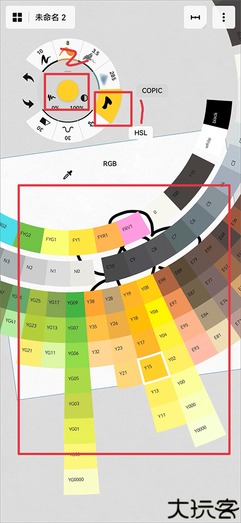 1、在绘画界面中,用户可以点击左上角工具中的填充功能,点击后再次点击中间圆心即可进行颜色的选择。