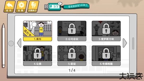 上滑主角抓住把手,或者站着不动就行,先坐下等老人靠近后起身让座也能通关。