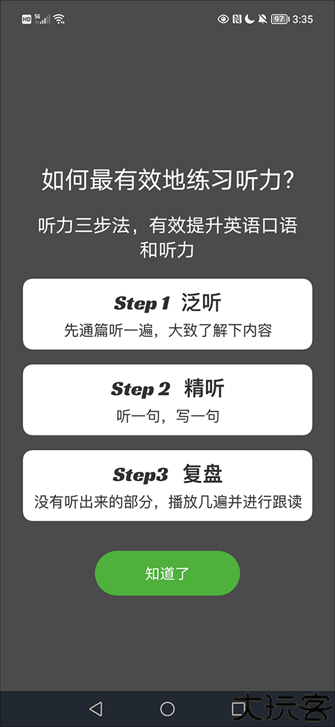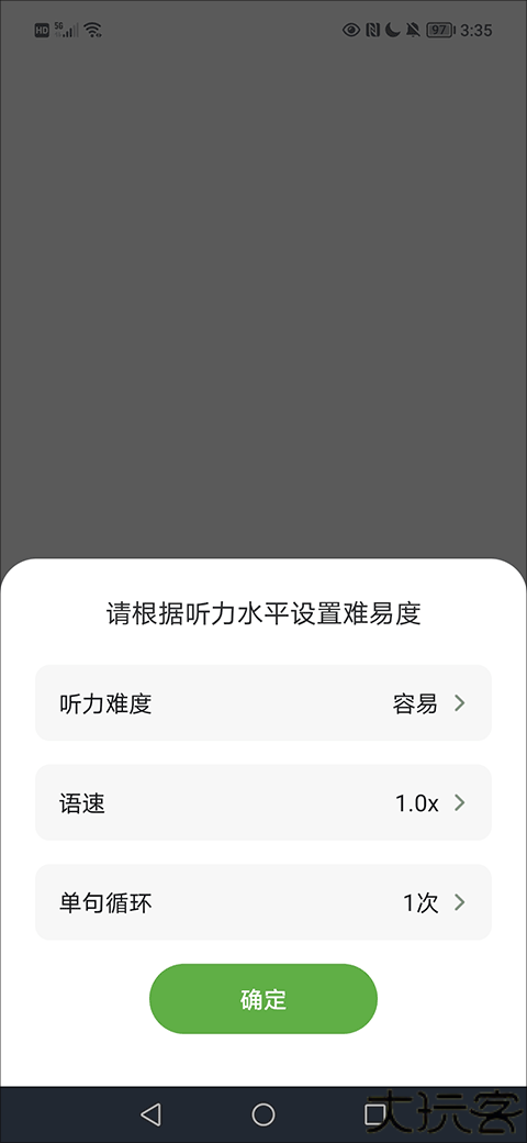 点击“知道了”后,根据个人需求选择听力测试难度。