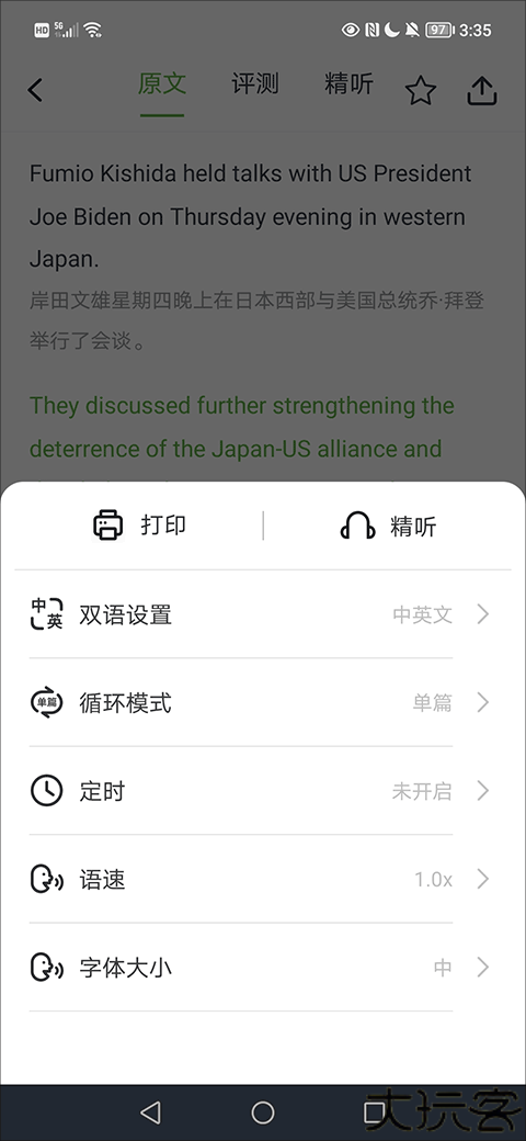 在弹出的框中点击“精听”以进入细致的听力练习。