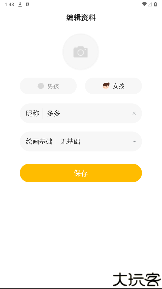填写姓名、性别及绘画水平,匹配个性化内容。