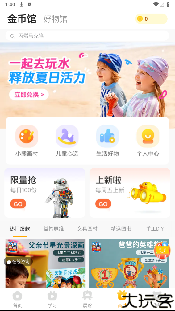 在金币馆中积攒金币,达标后可换喜爱礼品。