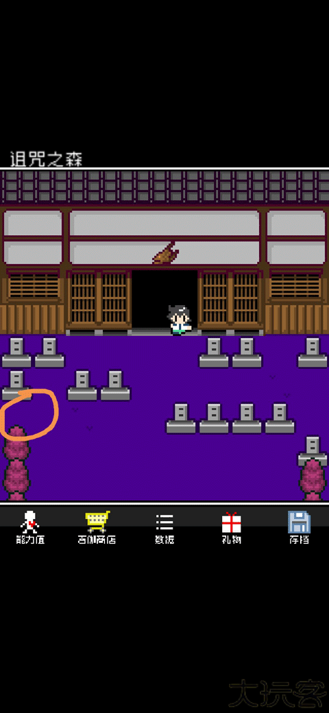 2、从图示入口顺时针绕寺一圈,击败守卫即可进入寺内,激活技能系统。