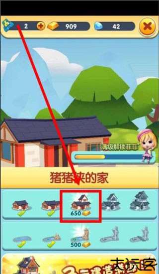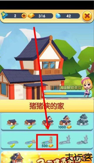 2、打开“猪猪侠的家”,点击房屋图标完成房屋搭建。