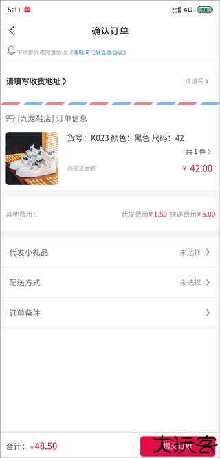 填写收货信息后确认下单,完成在线购物流程。