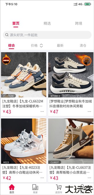 首页浏览鞋品,也可输入关键字查找心仪商户。