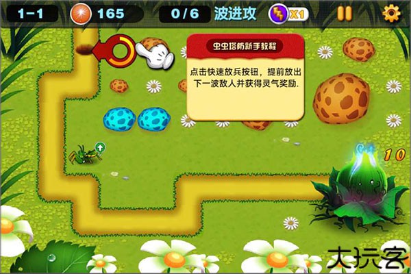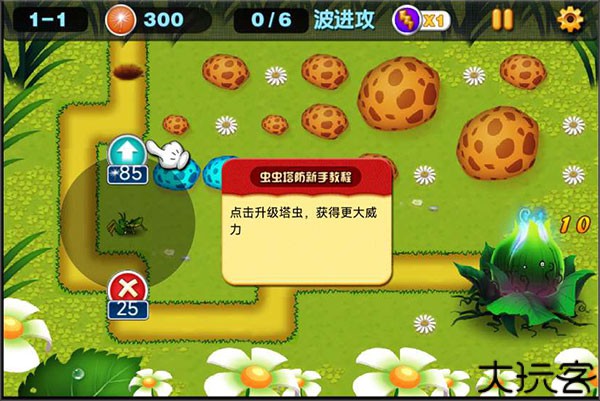 4、点击塔虫即可进行升级,可以获得更强的威力。