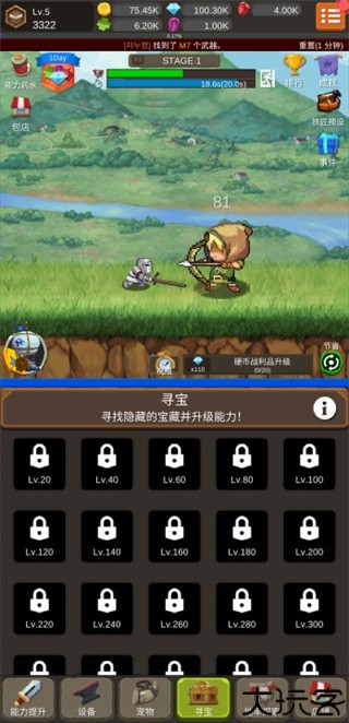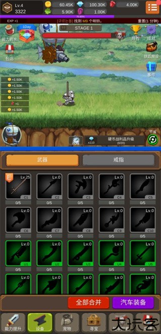3、可通过打怪、升级来不断提升骑士的属性强度。