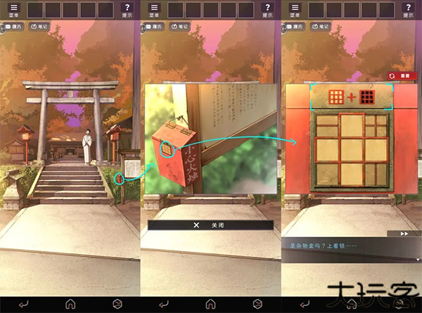 2、依照提示,查看两边灯笼,在灯笼里取得蜡烛,根据灯笼图案,解开小箱子。