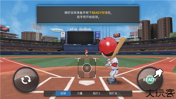 6、做好击球的准备后按下ready按键后,投手将开始投掷。