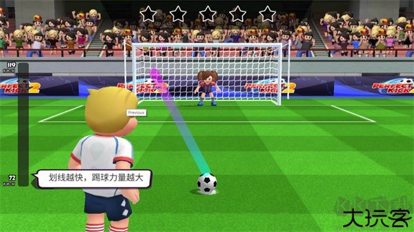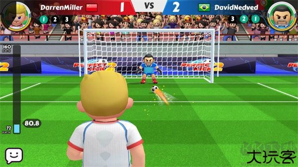 点球达人2中文版(Perfect Kick 2)是充满竞技感的足球策略手游。游戏采用炫酷的UI设计和卡通风格,主要玩法是1V1点球对决,规则简单易懂,5局3胜,轮流攻防,最先进球的一方获胜。同时,点球达人2中文版有等级和道具系统,提升球员能力,还能自定义球员外观,打造专属风格。通过培养球员,提升爆发力、敏捷性和耐力,配合高超技巧轻松击败对手。不同的踢法交替使用,比如弧线球和大力抽射,能更有效地赢得比赛。