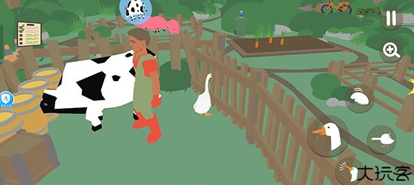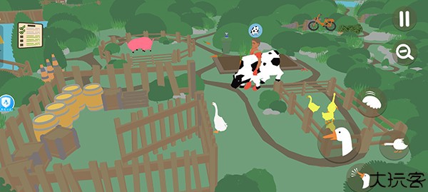 1、在本站下载安装好捣蛋大鹅模拟器正版下载,运行游戏并进入游戏,然后将鹅移动到牛棚的门旁边用嘴推开门,等牛跑出去。