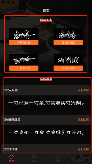2、软件提供了字体课程,让你可以选择学习,练就一身好字。