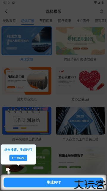 点击生成按钮,几秒内完成整份幻灯片制作。