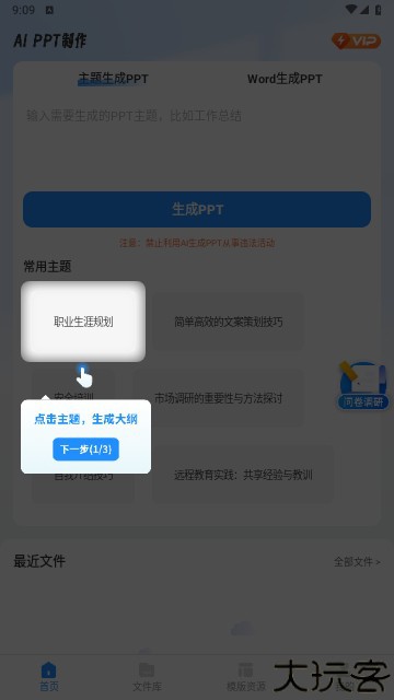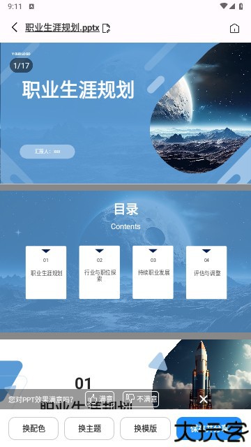 输入展示主题,系统自动识别并列出演示大纲。