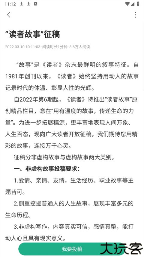 3、选择读者故事征稿内容开始。