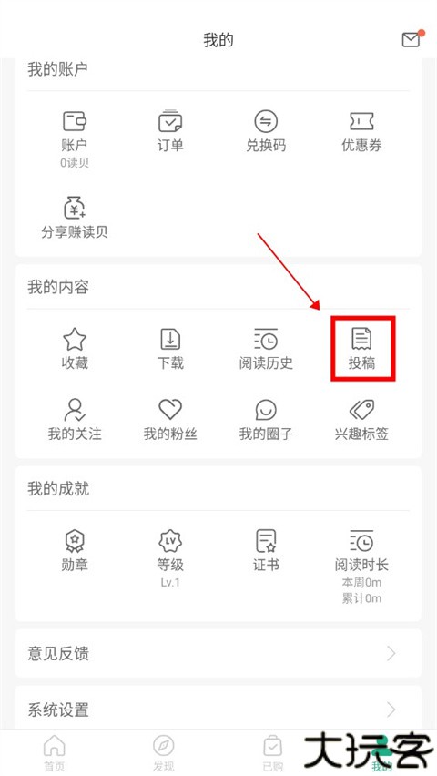 2、在个人中心找到投稿选项继续。