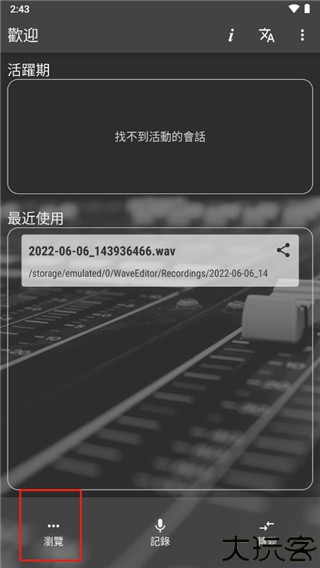 点击“记录”进行音频录制,支持提取、剪辑、变速及混音等功能。