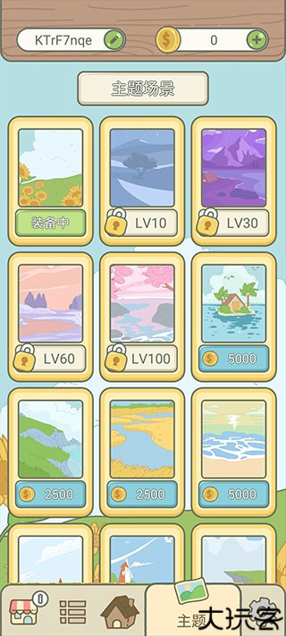 3、点击【主题】界面,玩家则可以看到各种好看的游戏背景图,通过花费金币既可以解锁各种背景。