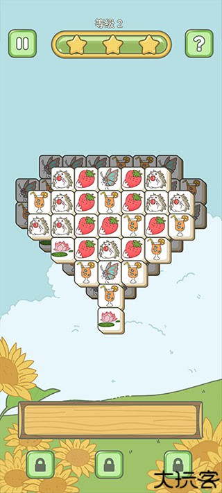 5、点击关卡即可开始游戏,玩家要将相同方块进行点击,3个相同方块就会自动消除,玩家要注意下一层会出现方块种类,最好点击与收集框相同的东西。