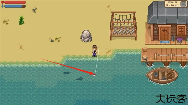 2、在这里玩家可以把钓线扔进河里或海里享受宁静的钓鱼时光等等。