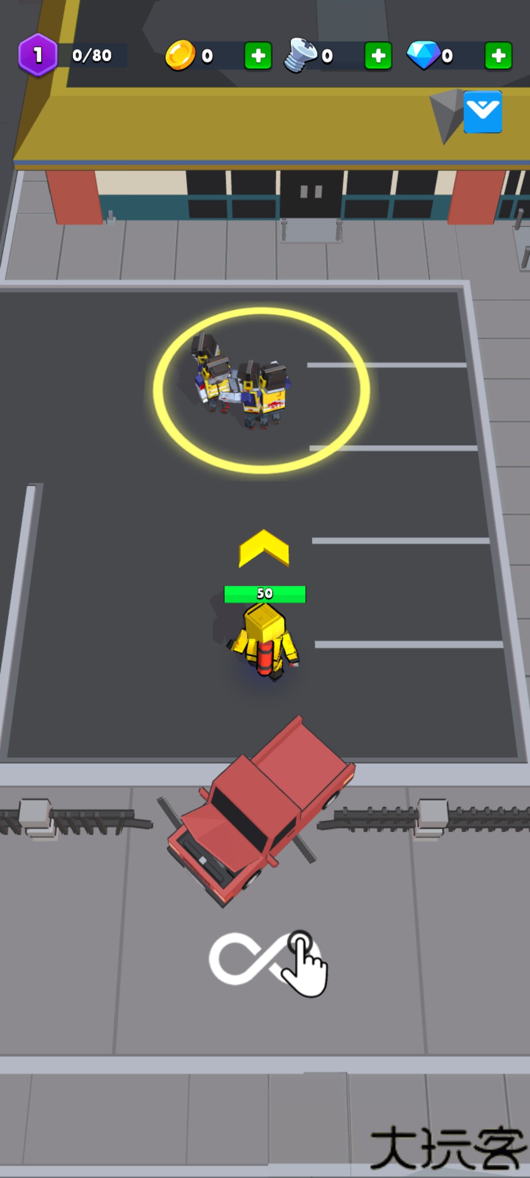 1、首先进入游戏后,滑动屏幕让角色朝着黄色箭头指示走,利用八字形旋转去杀死前面的僵尸。