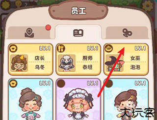 1、打开乌冬的旅店官方正版最新版乌冬的旅店,点击右下角的员工图标进入,点击右上角的钥匙图标。