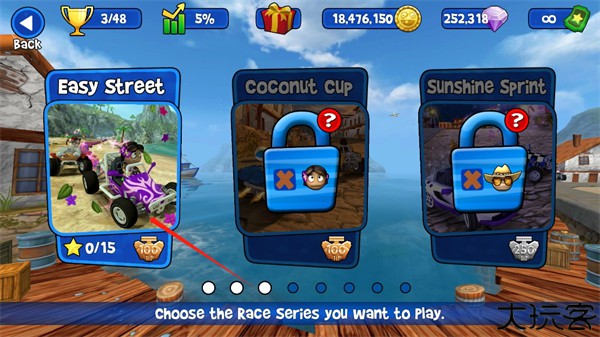 3、可自由切换赛车并进行性能升级,随后点击choose series开始赛事。