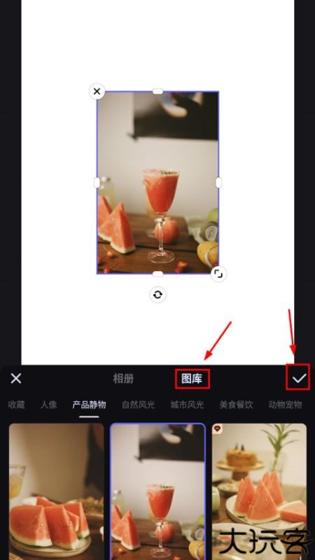 4、用户可在相册或者图库中添加图片,添加好后,点击右侧√确定。