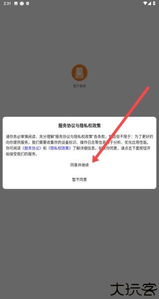 1、打开进入橙子表单app里,可以去点击同意并进入。