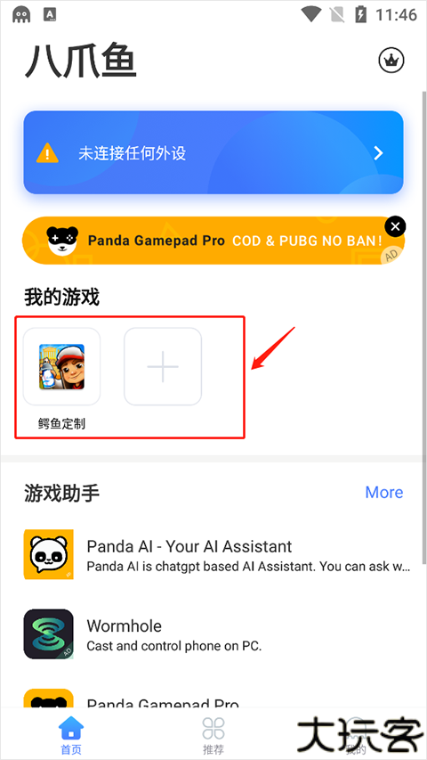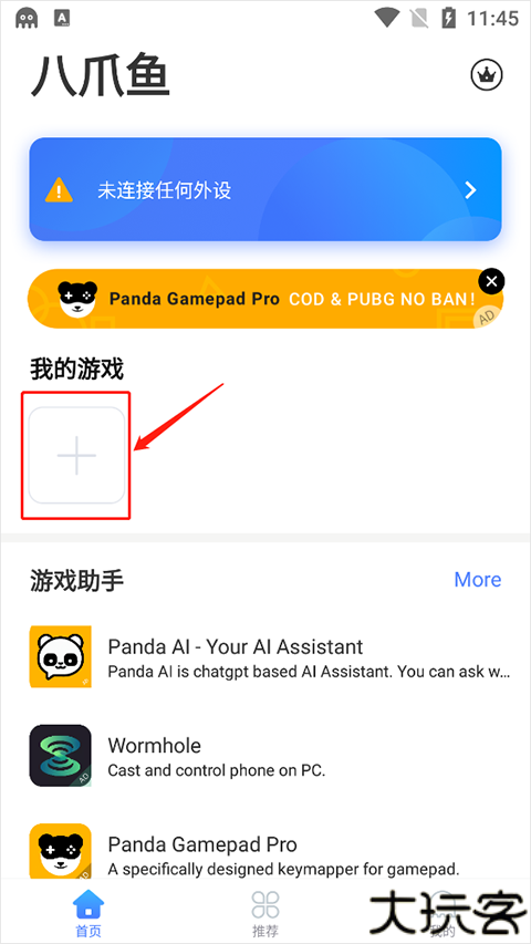 2、可以添加游戏,进入首页界面,点击+按键。