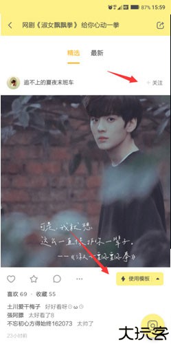 3、可选择关注模板创作者,方便获取更多优质作品更新。