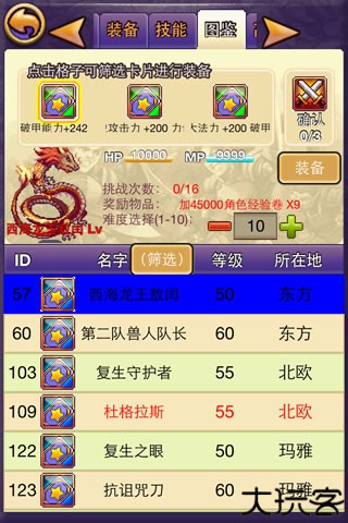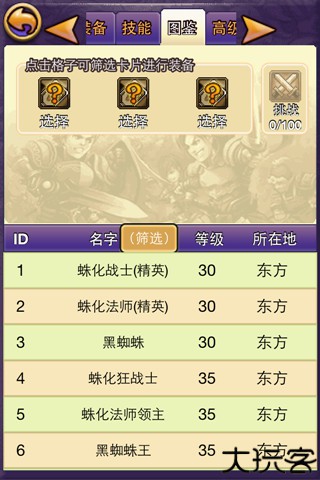 点击卡片查看属性详情,按所需技能组合制定目标挑战策略。