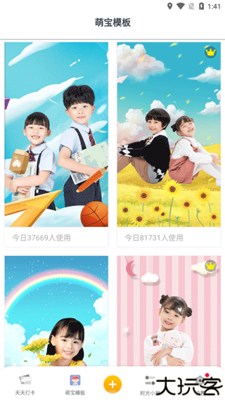 2、相册里有多种模板一键选择,从学会腹爬到躲猫猫再到学会走路,让记录变得更便捷,见证宝宝成长事件的一点一。