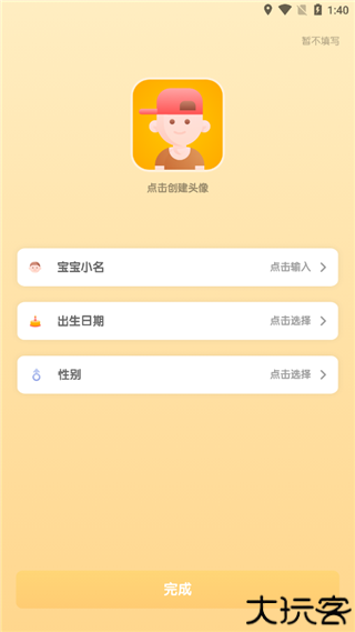 3、首先用户可以创建头像、宝宝小名、出生日期、性别等等。