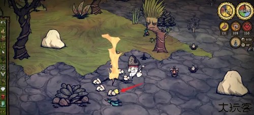 当手持火炬快烧完时,用2根树枝做一个新的船载火炬。