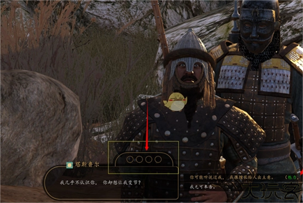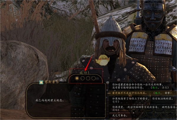 2、玩家需要说服他,对话框上方的四个圆圈代表着说服对方的进度。